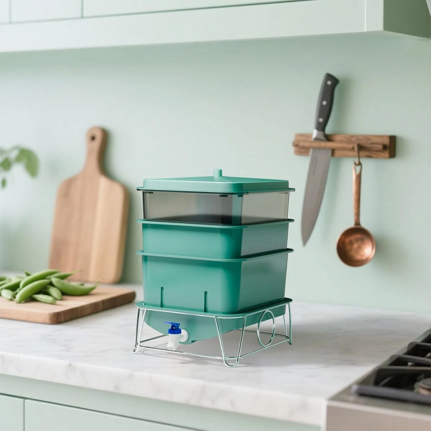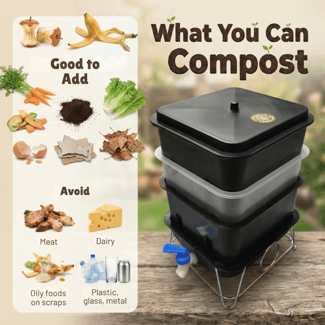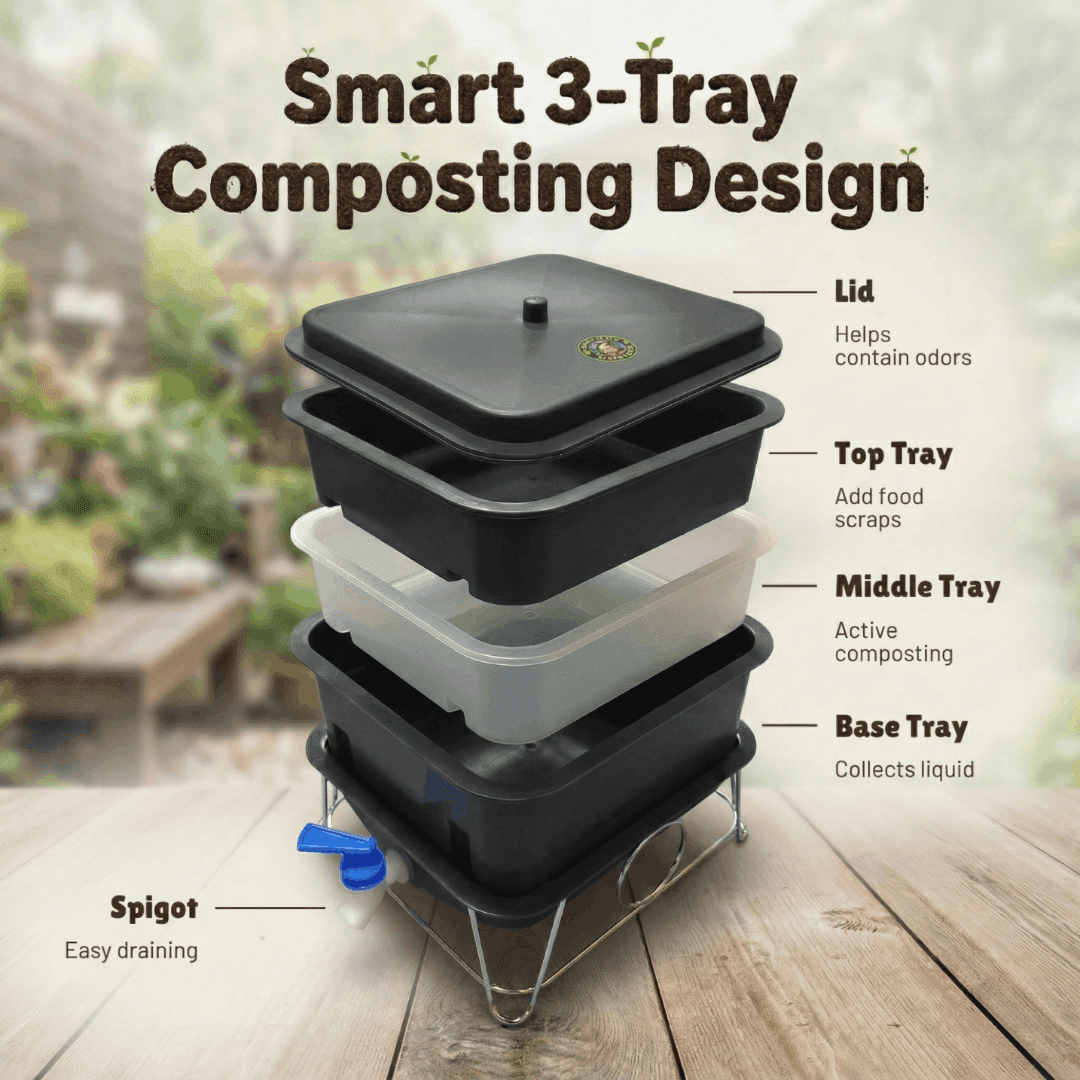 - Expandable — add more trays as your composting grows