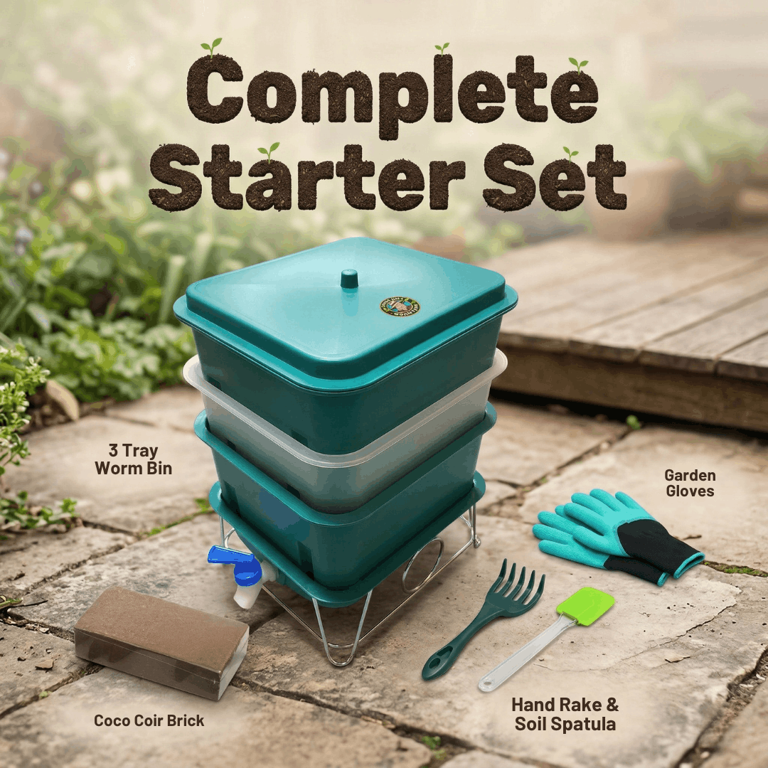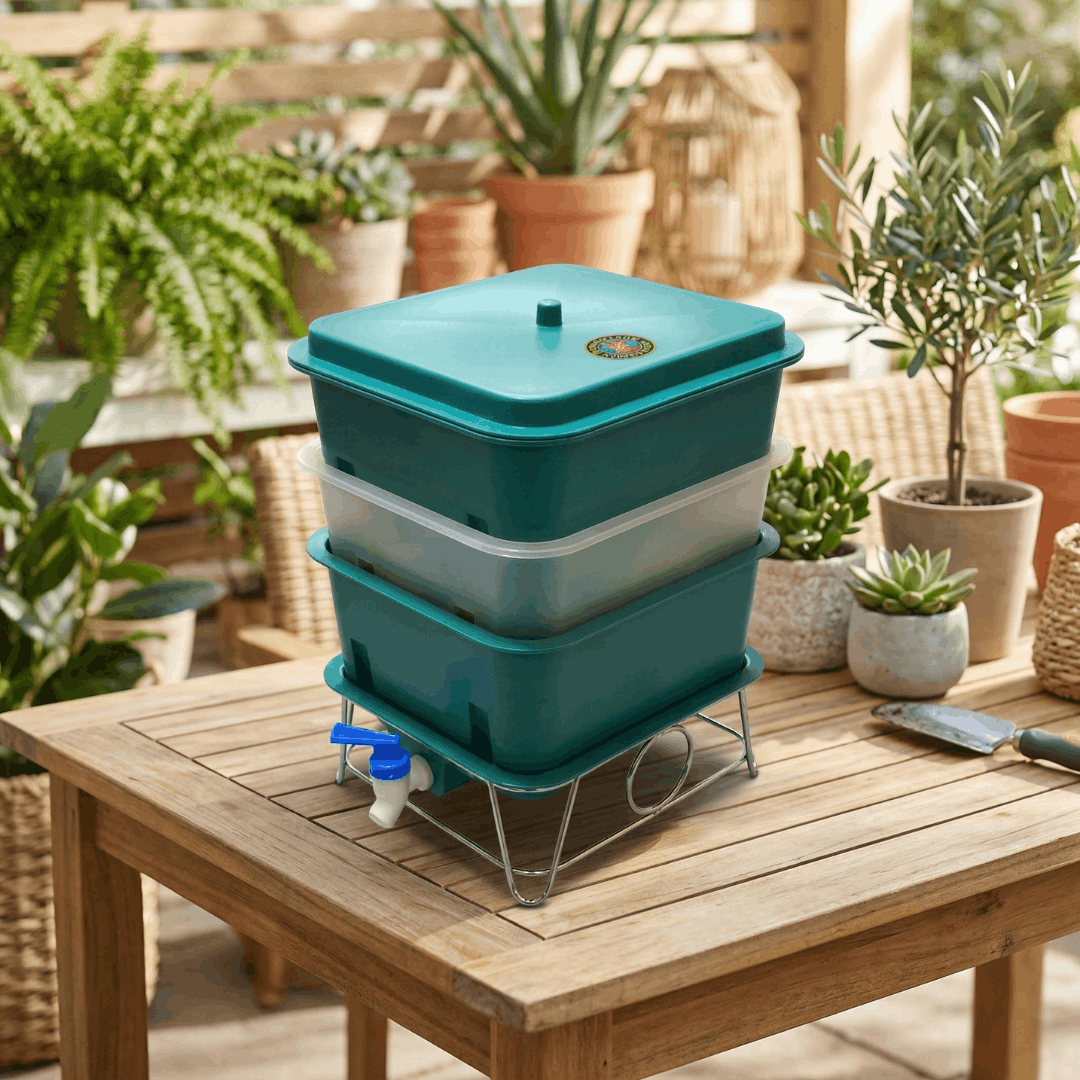 Not everyone needs a five-tray system. If you’re just getting started, living in a smaller space, or looking for a fun hands-on project with the kids — this is your bin. Compact enough to fit under a kitchen sink or on a apartment balcony, and powerful enough to turn your daily scraps into rich, living compost your garden will love.