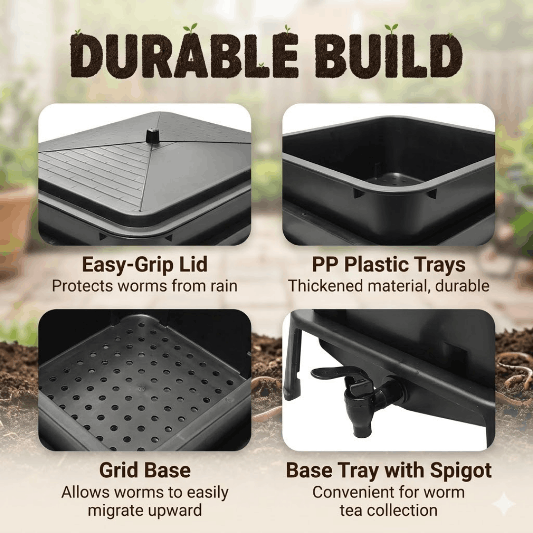 Built from durable PP plastic that handles years of moisture, scraps, and worm activity without cracking or falling apart on you.