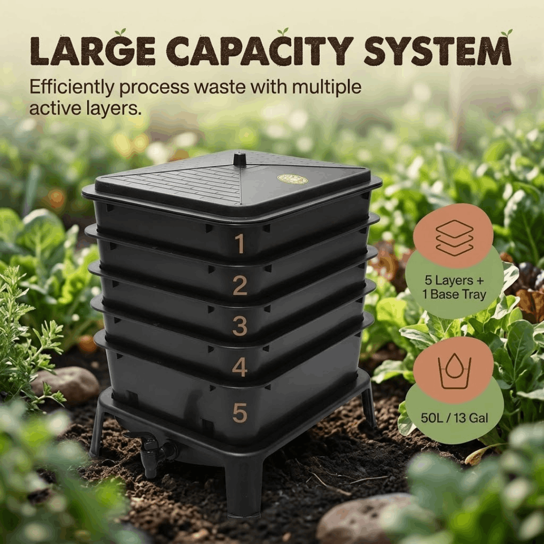 No chemicals. No bags of synthetic granules. No guessing. Just a closed loop that runs itself — scraps go in, black gold comes out — and your garden ends up better for it every single time.