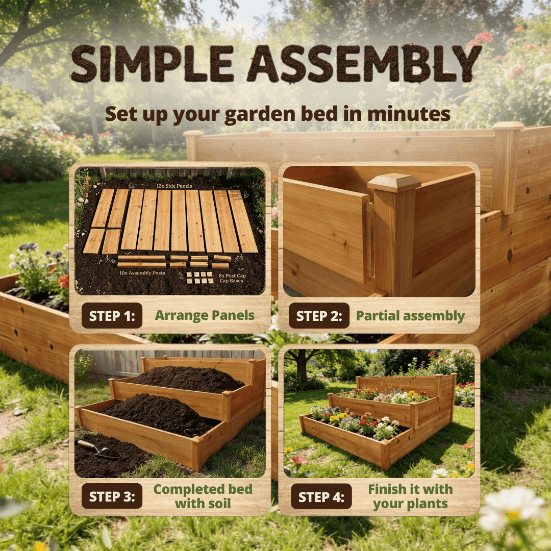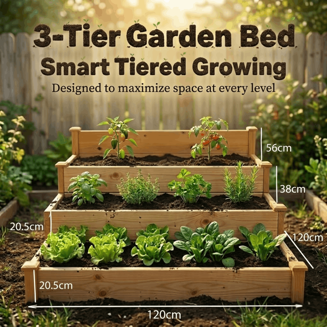 This 3-Tier Wooden Raised Garden Bed helps you fit more garden into less space while keeping everything neat, productive, and easy to manage.